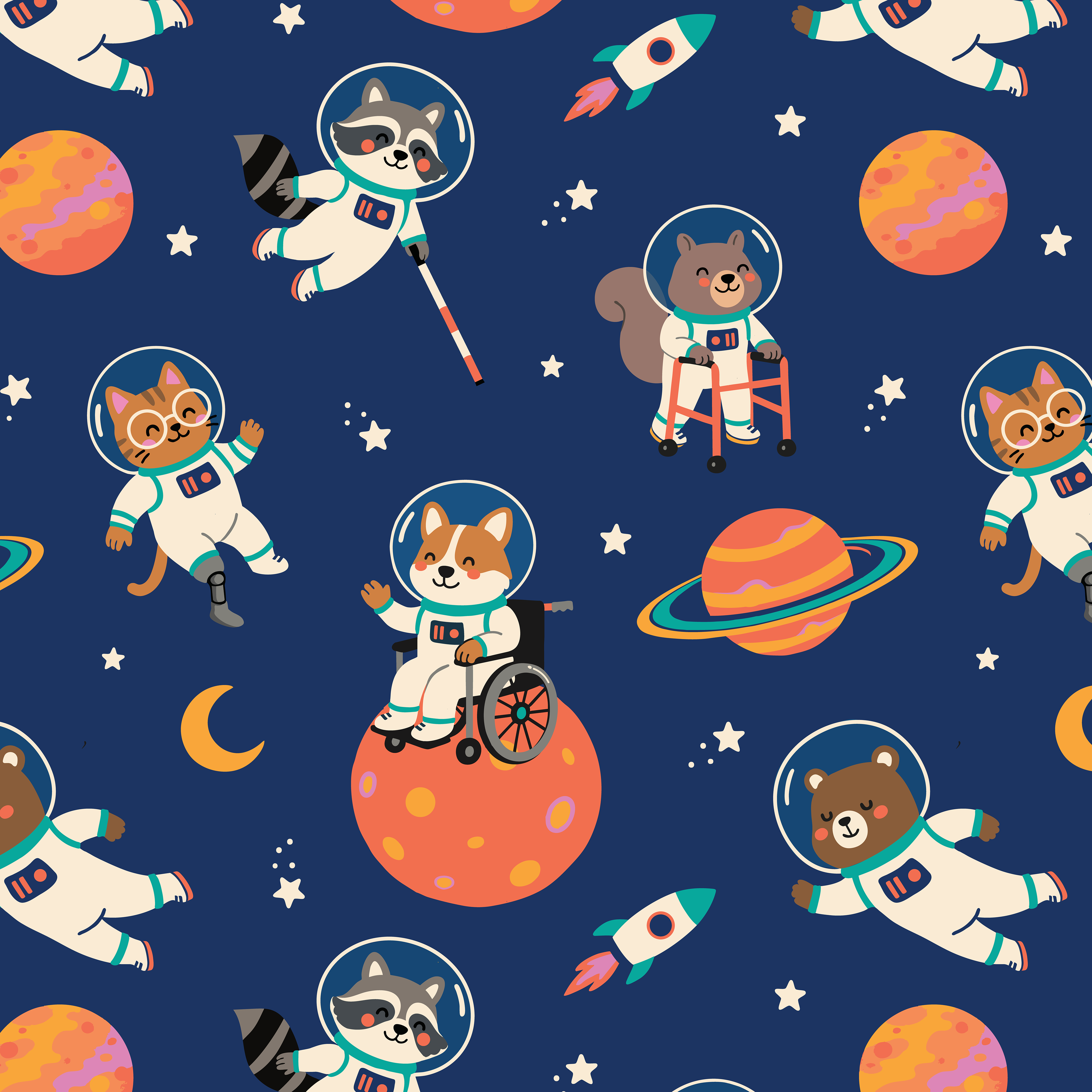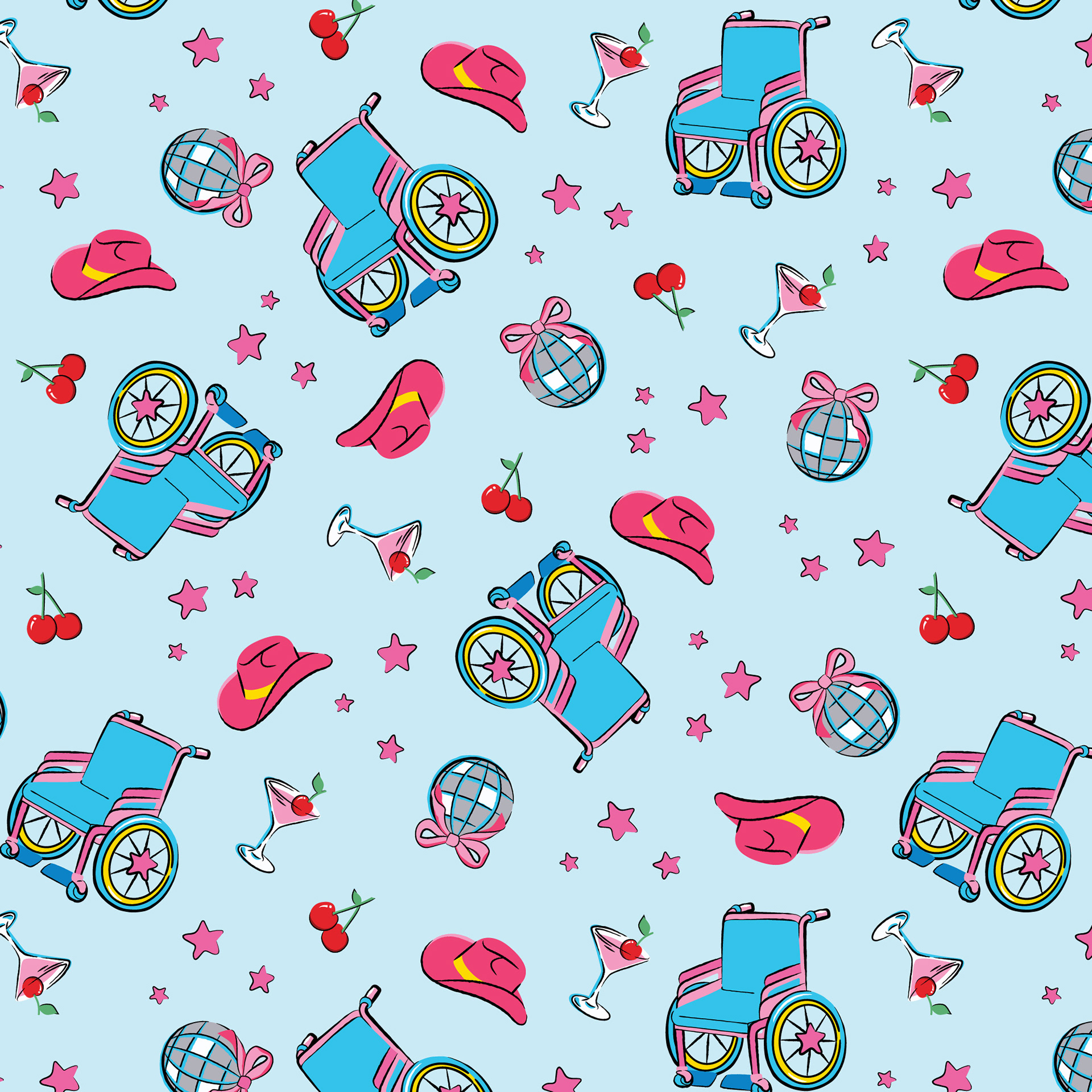 My pattern repeats are rooted in over 15 years of textile and illustration experience, beginning well before my work in the sock industry. I specialize in illustration-driven, character-led repeats that balance playful storytelling with intentional layouts.